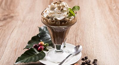 Sirve en una copa de malteada, decora con crema chantilly y espolvorea Colcafé Clásico