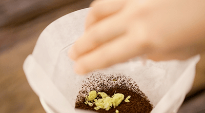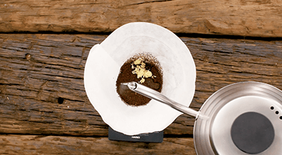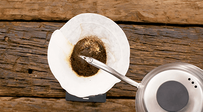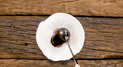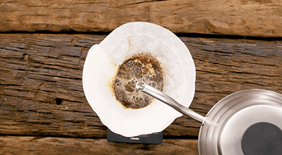Agrega 4 cucharadas de Café Matiz Marfil al filtro de una cafetera Chemex precalentada