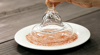 Aparte, mezcla azúcar con un toque de chile en polvo (chile piquín) humedece el borde de una copa margarita con agua o zumo de limón y escarcha