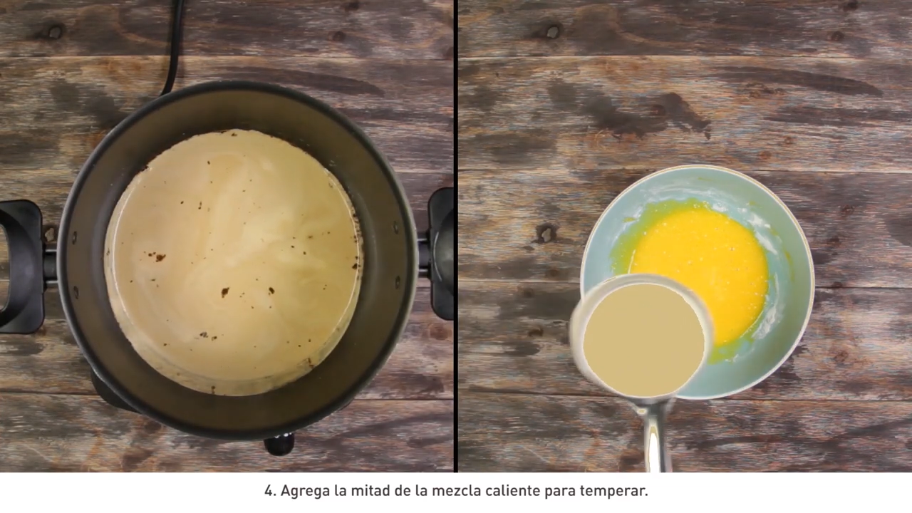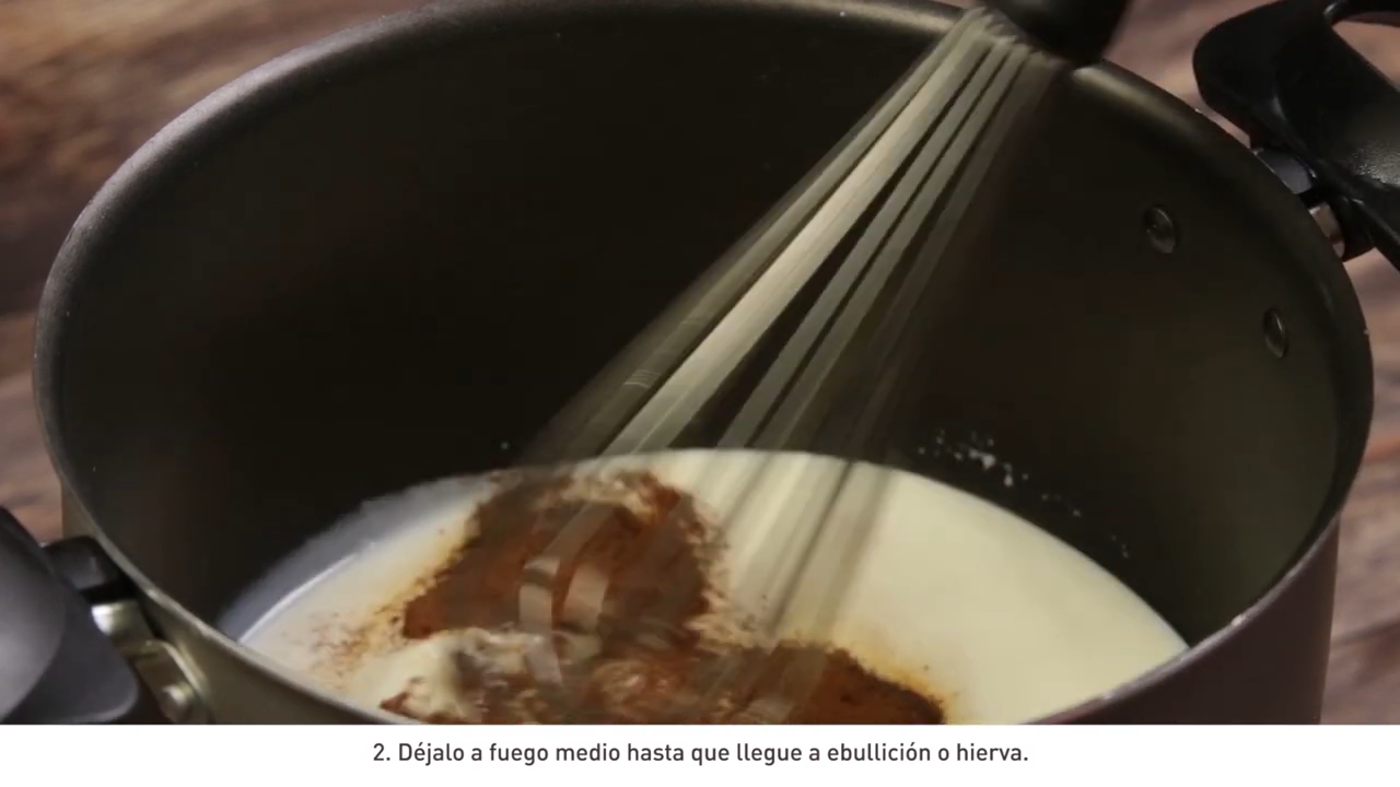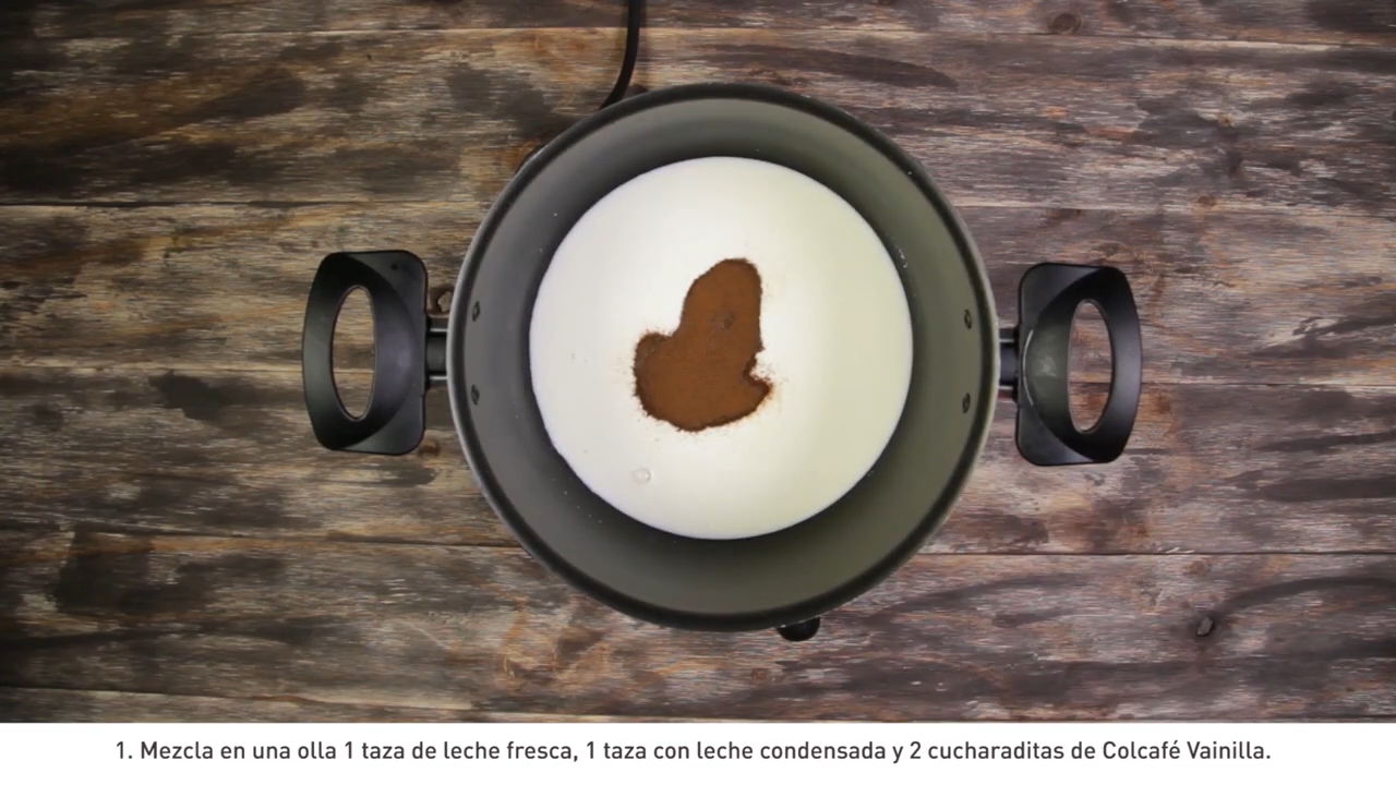 Mezcla en una olla 1 taza de leche fresca, 1 taza de leche condensada y 2 cucharaditas de Colcafé Vainilla.