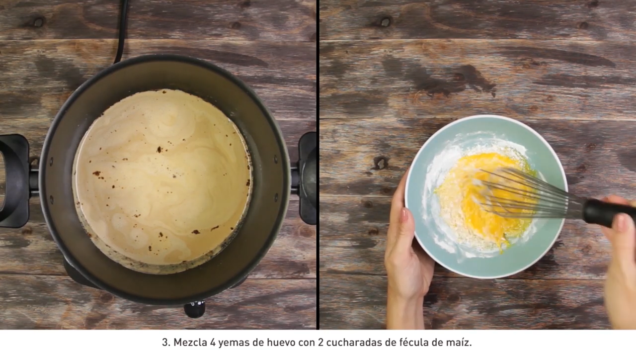 Mezcla 4 yemas de huevo y 2 cucharadas de fécula de maíz.