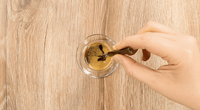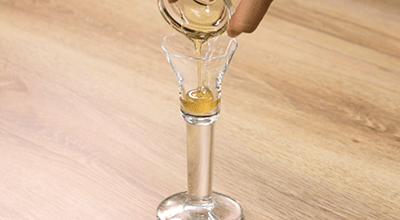 Añade a una copa pequeña: 1 cucharadita de miel y pizca de jengibre molido