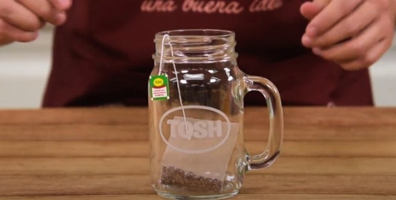 1. Agregar 1 tisana para infusión fría Tosh en un vaso grande