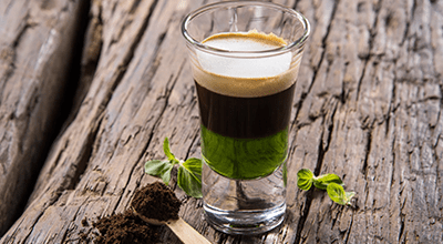 Una bebida para verdaderos amantes al café, es el resultado de nuestro Macchiato a la menta.