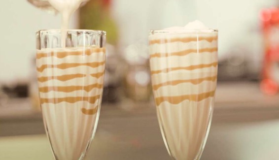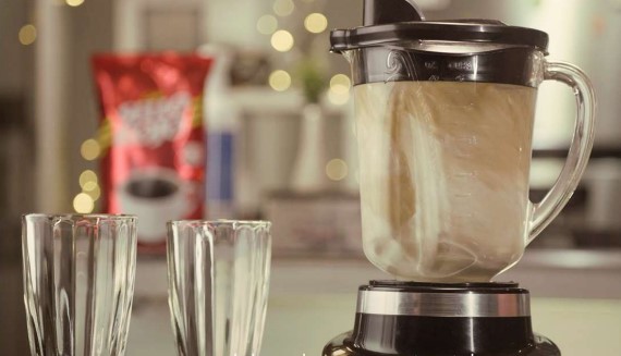 5. Servir sobre los vasos previamente decorados y disfrutar de una deliciosa y refrescante malteada de café