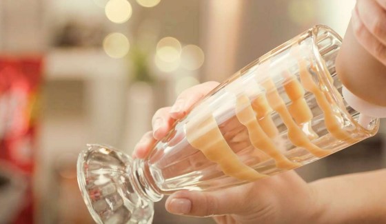 4. Decorar las paredes de los vasos con arequipe al gusto.
