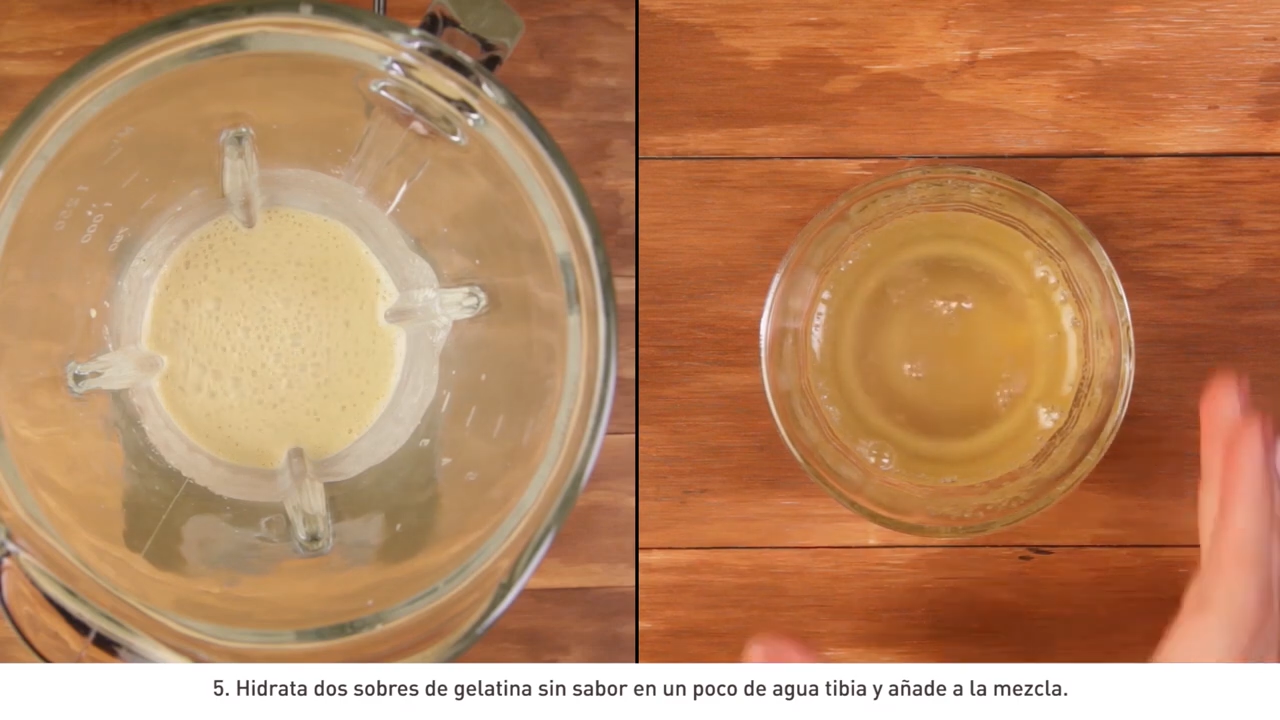 Hidrata dos sobres de gelatina sin sabor en un poco de agua tibia y añade la mezcla.