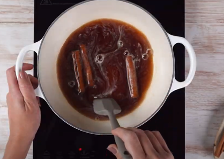 Crear un sirope con 1 taza de agua, 1⁄2 taza de azúcar morena, 3 astillas grandes de canela y 2 cucharaditas de Colcafé Clásico, Mezclar y dejar reducir.