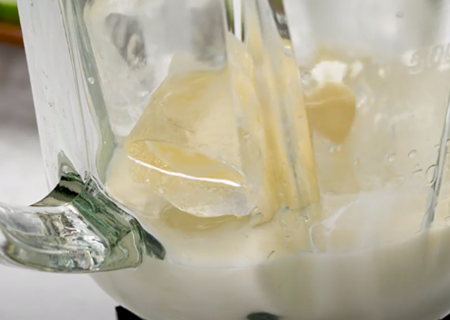 Agregar en una licuadora, 1 taza de hielo, zumo de 2 limones,1⁄4 de taza de leche y 3 cucharadas de leche condensada.
