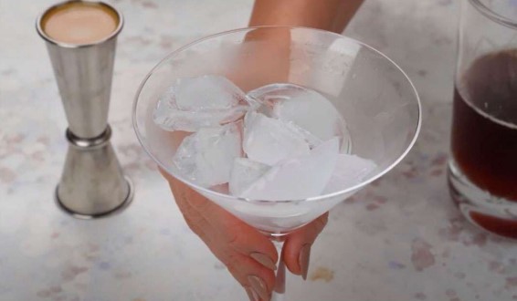 3. Poner hielos al gusto sobre la copa para enfriar y luego retira