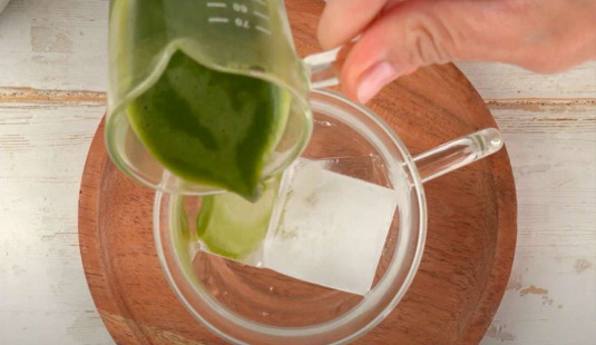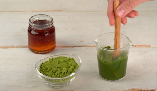 En 50 mI de agua, añadir 1 cucharadita de té matcha y revolver.