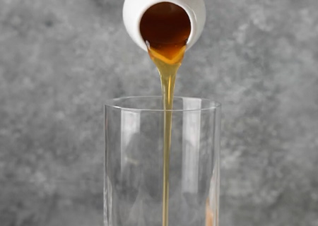 Agrega miel a un vaso hasta llenar 1⁄4 del mismo.