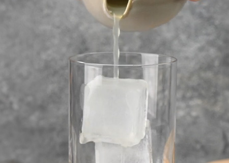 Luego agrega al gusto uno por uno los hielos al vaso.