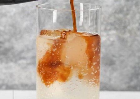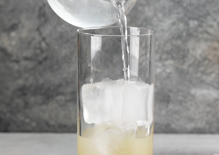 Luego adiciona la soda hasta cubrir 3⁄4 del vaso.