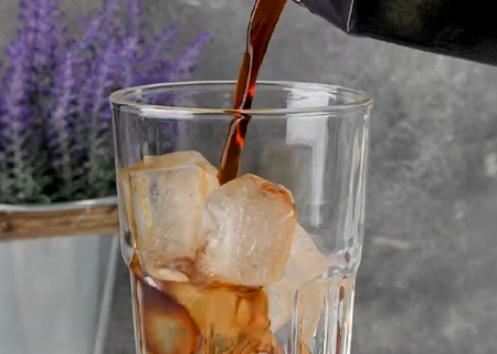 Adiciona la bebida Cold Brew Matiz hasta llenar 3⁄4 del vaso.