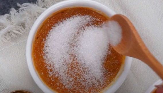 5. Agregar 1 cucharada de azúcar encima y repartir bien por la superficie