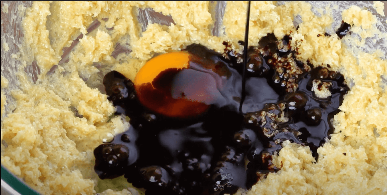 Agregar 1 huevo, ½ cucharadita de esencia de vainilla y el café preparado a la mezcla anterior e integrar.
