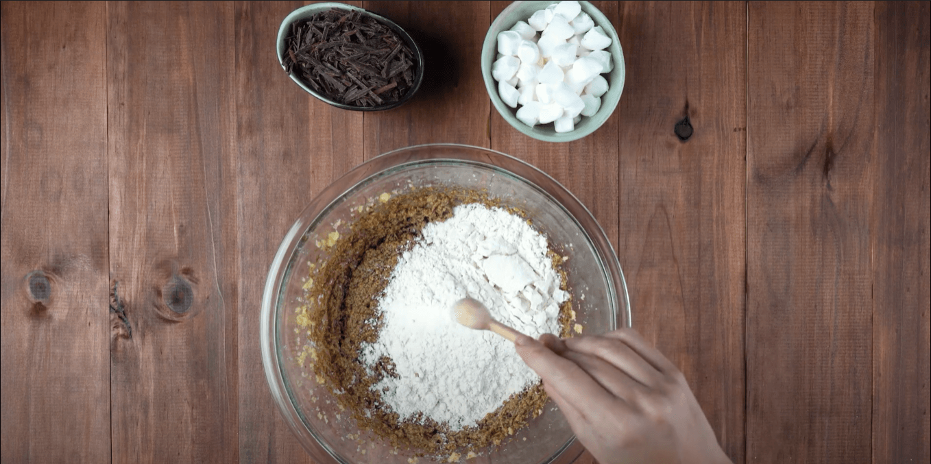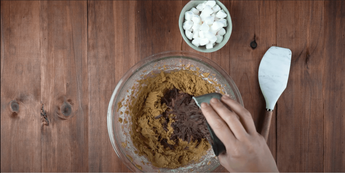 Incorporar los trozos de masmelos y hornear por otros 5 minutos más a la misma temperatura.