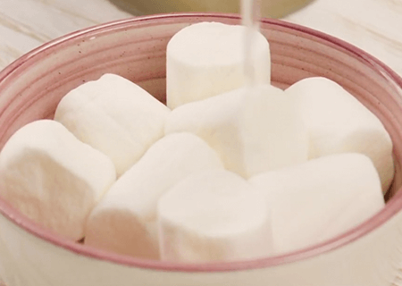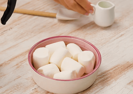 Agrega 1 taza de masmelos en un recipiente apto para microondas.