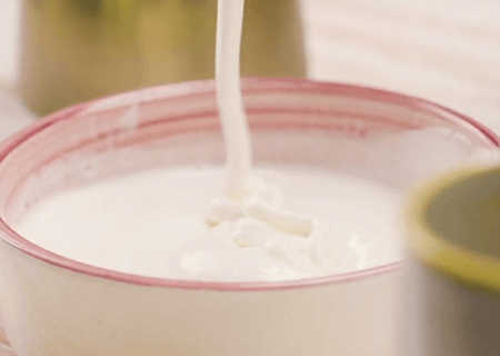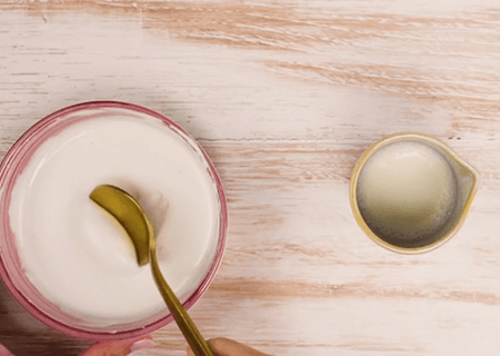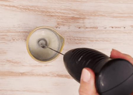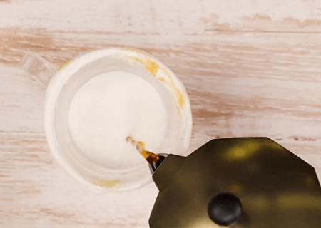 Agrega 2 cucharadas de la crema caliente a 80 ml de leche.
