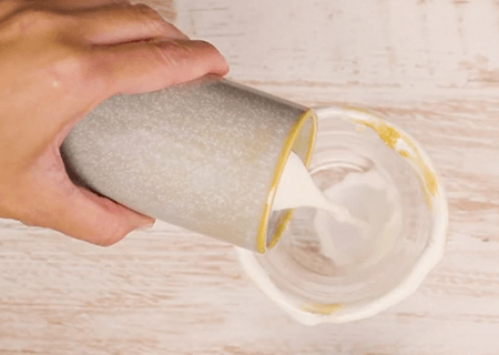 Prepara tu taza decorando el borde con la crema de masmelo.