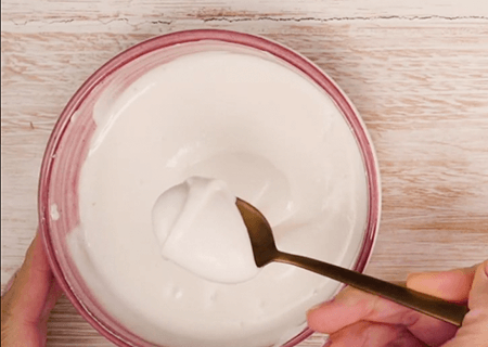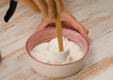Calienta la mezcla en intervalos de 5 segundos hasta lograr una crema uniforme.