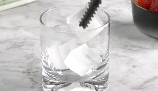 Agregar 3 cubos de hielo sobre un vaso de vidrio.