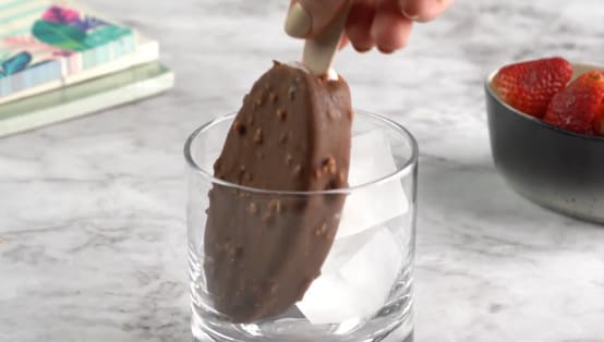 Añadir una paleta Polet Cookies and Cream de manera vertical sobre el vaso.