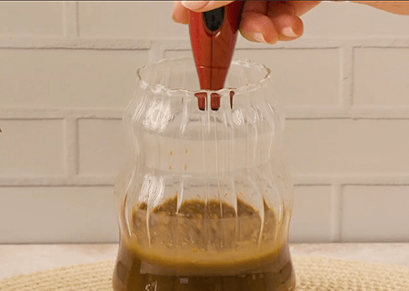 Vierte 90 ml de leche espumada.