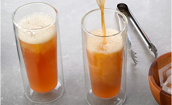 5. Agregar hielo al gusto sobre vasos altos y servir completamente
