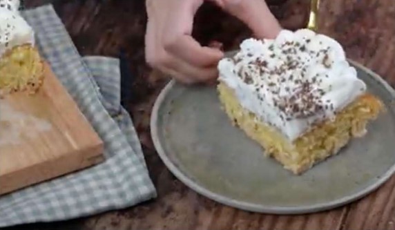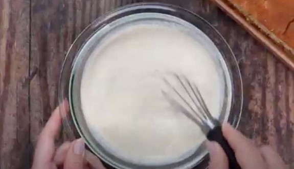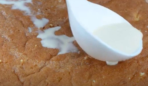 4. Agregar de manera cuidadosa el líquido en la superficie de la torta para que se absorba en la misma.