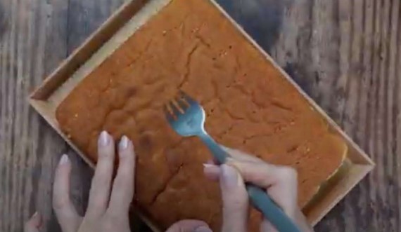 3. Con un tenedor, perforar la torta deseada en diferentes puntos para aumentar la absorción