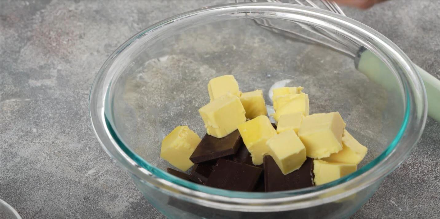 En un bowl, añadir 115 gr de Chocolate Santander en trozos y 115 gr de mantequilla sin sal.