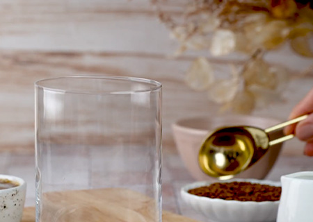 En un vaso vierte 1 cucharada de Café Liofilizado Colcafé.