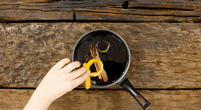 Agrega un trozo de cáscara de limón y un trozo de cáscara de naranja