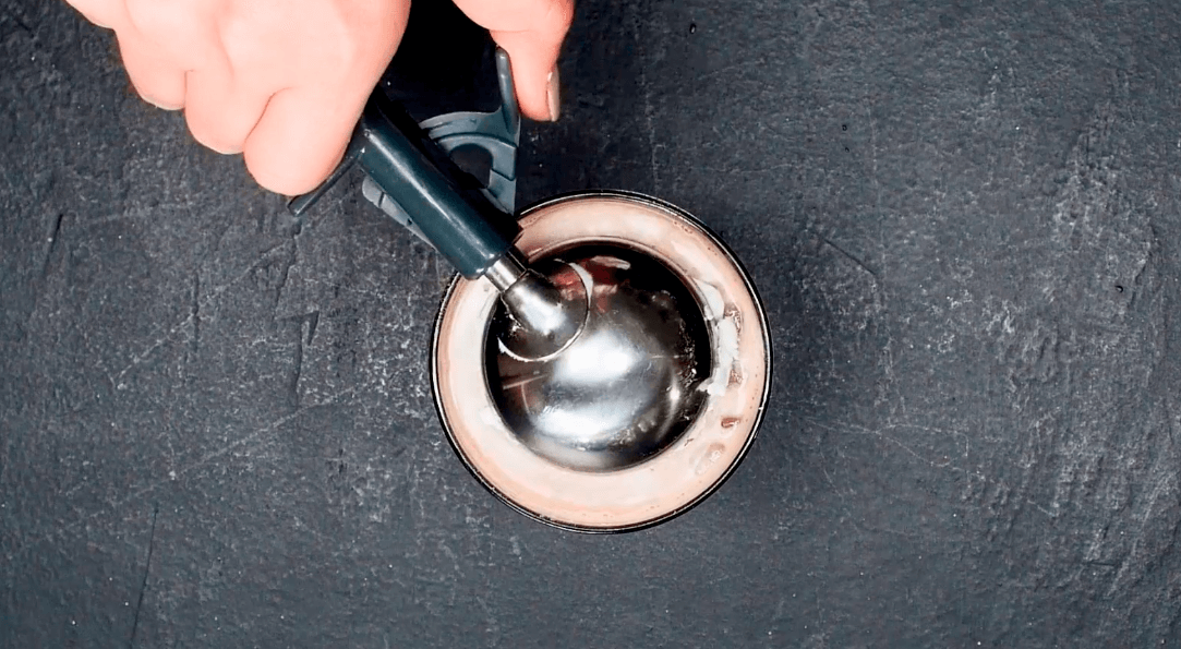 Adiciona una bola de helado de vainilla y decora con salsa de chocolate.