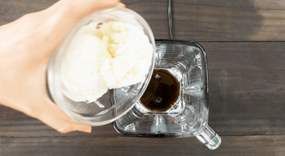 Adiciona 2 bolas de helado de vainilla y 1 onza o 2 cucharadas de ron