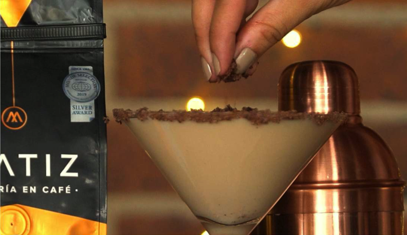 Agregar a la coctelera el hielo, 1 copa de vodka, ½ copa de Triple Sec, 1 copa de Café Matiz Ámbar y 1 copa de crema de whisky.