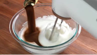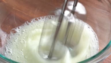 Batir 3 claras de huevos hasta obtener la textura deseada.