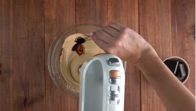 Una vez esta mezcla esté homogénea, verter 1 cucharadita de esencia de vainilla a la mezcla y continuar batiendo.