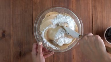 Adicionar 80 gr azúcar pulverizada y mezclar de manera envolvente con ayuda de una cuchara