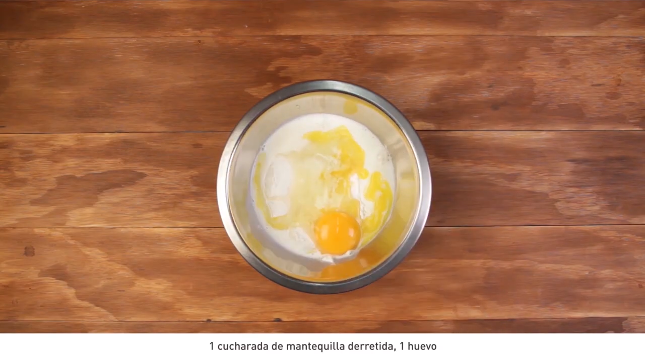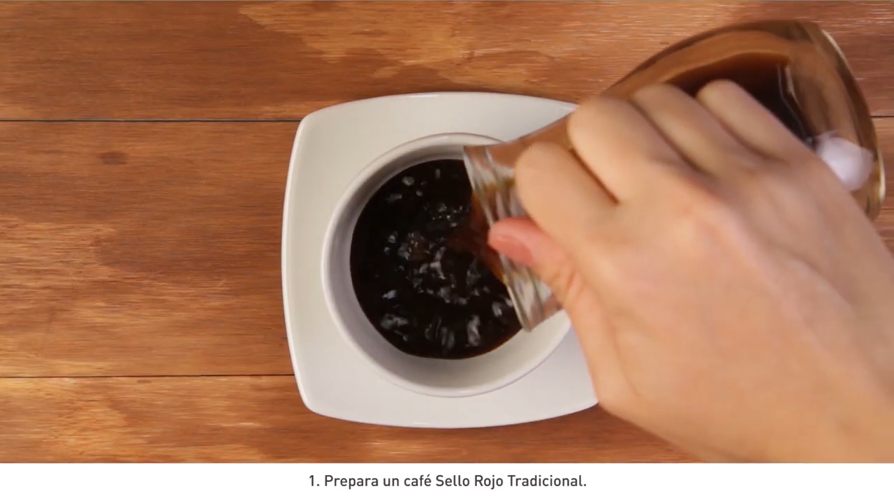 Incorpora en un recipiente 1 sobre de mezcla lista para pancake CORONA, 1/2 taza de leche, 1 cucharada de mantequilla derretida, 1 huevo y por último 1 pocillo de Café Sello Rojo Tradicional.