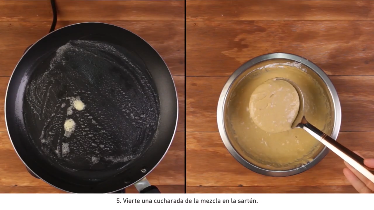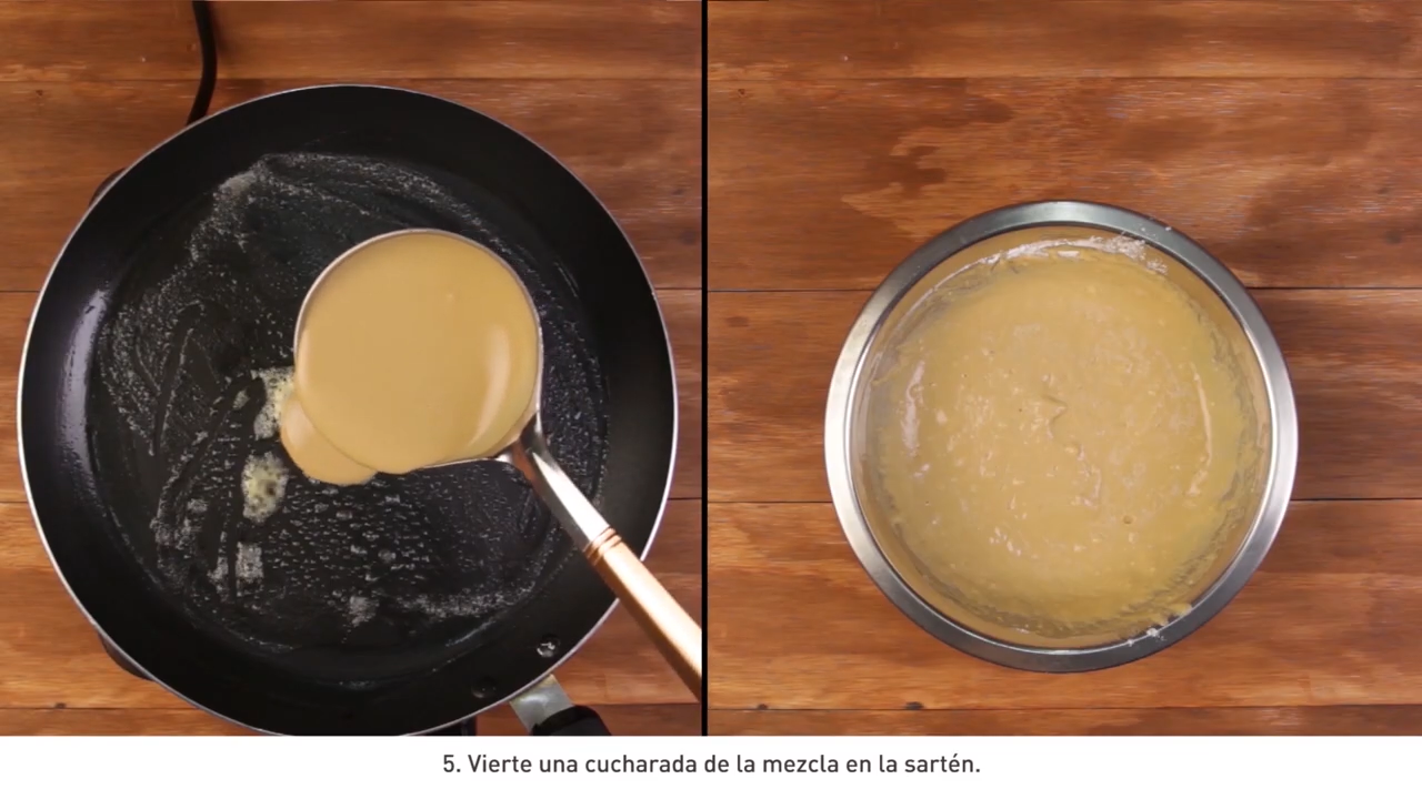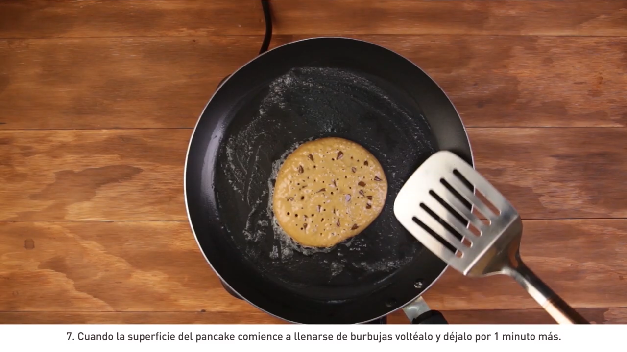 Cuando la superficie del pancake comience a llenarse de burbujas voltéalo y déjalo por 1 minuto más.