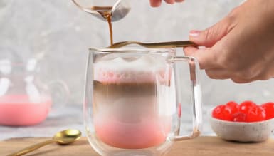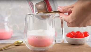 ¡Un Latte rosa! ? Te invitamos a que prepares esta receta de café, la más ‘chic’ que te vas a encontrar. ? El sabor de las cerezas será perfecto para que disfrutes de una preparación única, llamativa y, obviamente, deliciosa. ?